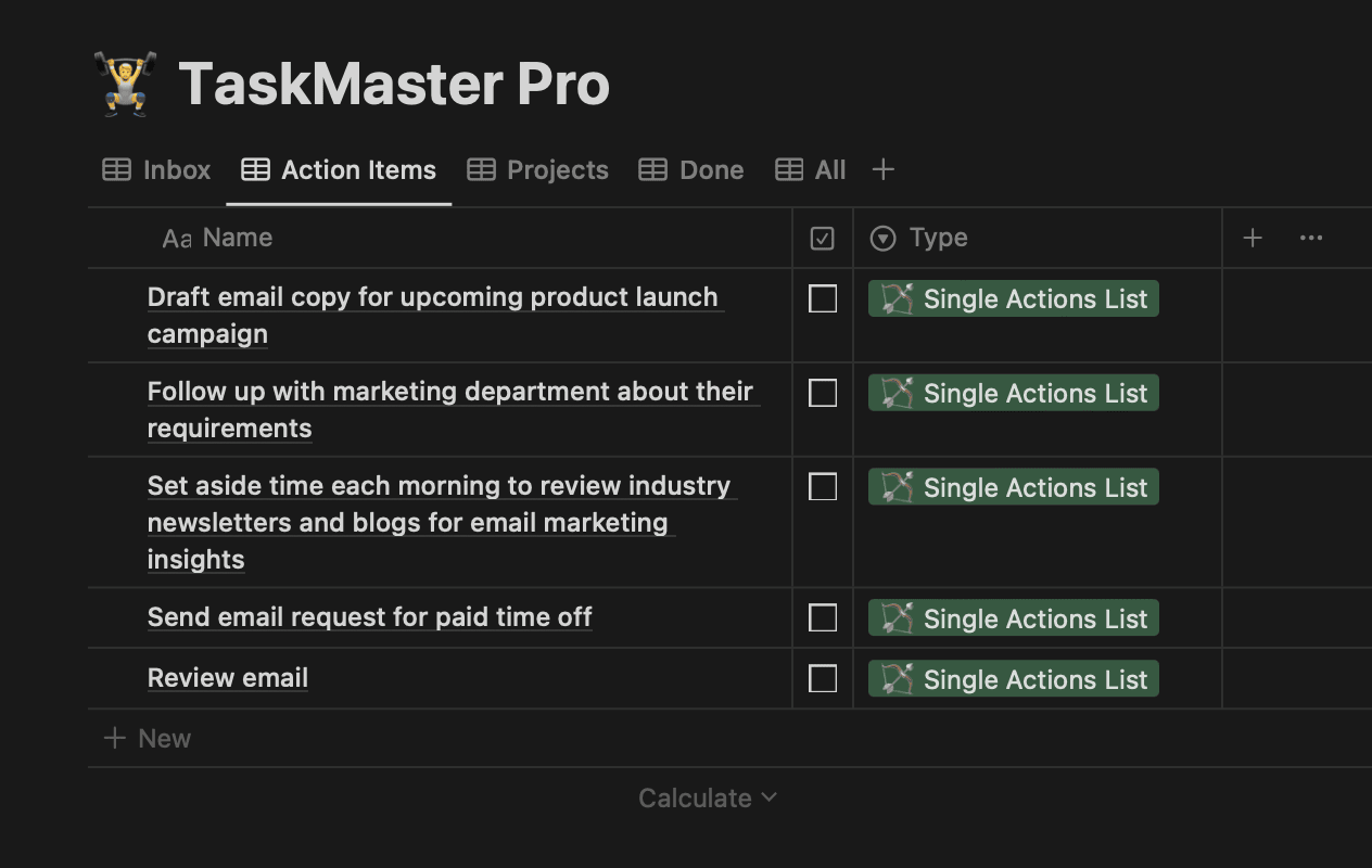Single Action List View: Tackle quick, one-step tasks during your time blocks. These are great for knocking out in short bursts of focused work.