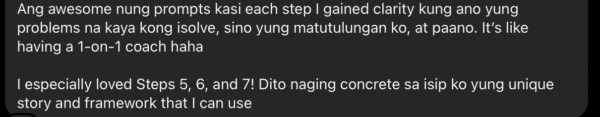 "These prompts felt like a 1-on-1 coaching session. For the first time, my unique story and framework became clear."